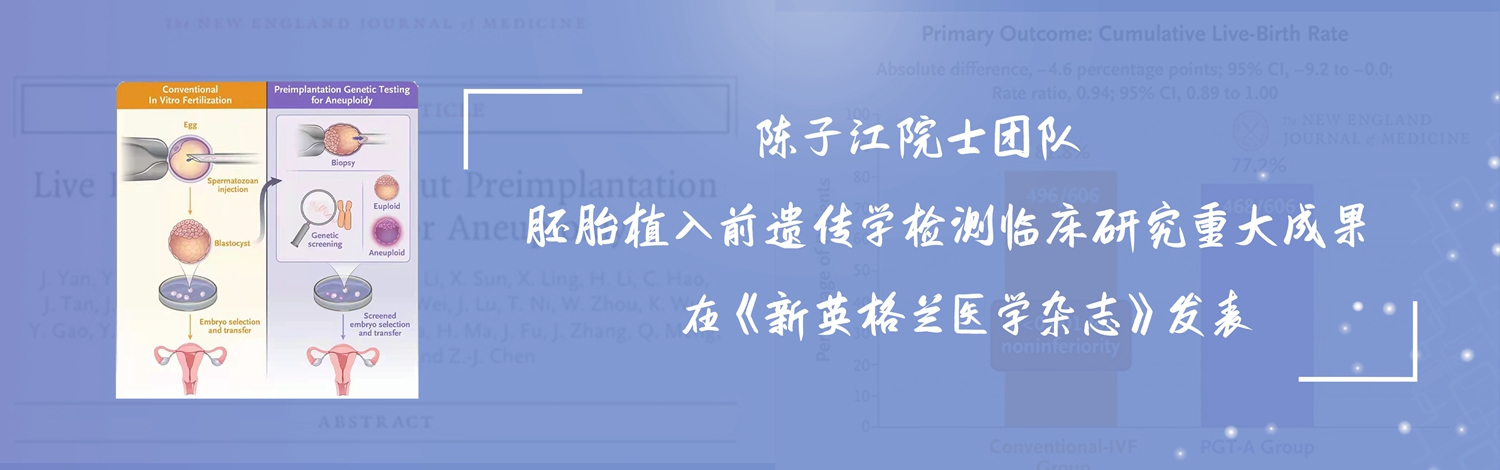陈子江院士团队胚胎植入前遗传学检测临床研究重大成果在《新英格兰医学杂志》发表设计:高子芸供图:宣传部